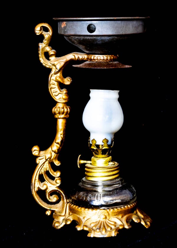 #vapocresolene #cresolene #kerosene #glassreservoir #metalframe #ornateframe #milkglassfunnel #creosote #coaltar #coldsandmeasles #tincbenz #tinctureofbenzoin