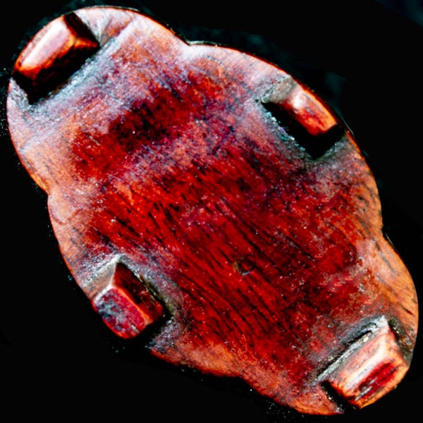 If Auld Curiosities understands the Chinese reverence to this symbol, it is regarded as an auspicious and revered symbol which can represent beginnings and endings in Chinese culture. The dragon is regarded as having superior knowledge, wisdom and also to represent transformation. I think this belief arises from the story of Pulao, the third son of the Dragon King. He was told to sit atop a warning bell to amplify the sound when it was rung by Pulao’s load roar. Pulao was apparently scared of whales and when he felt attacked by whales the bell rang loudly. Paired together the dragon and the bell have come to stand for strength, power over water and good luck. In this case the dragon is carved from wood (? rosewood or cherrywood) with the bell affixed to the lower jaw by a small length of chain. The bell has a brass body and the exterior covered in coloured glass from melted frit, separated by thin brass cloisonné’s. As noted in the title this is a small item, standing just 100mm tall on a base with a maximum length of 58mm and width of 35mm. No evidence of damage seen on examination.
