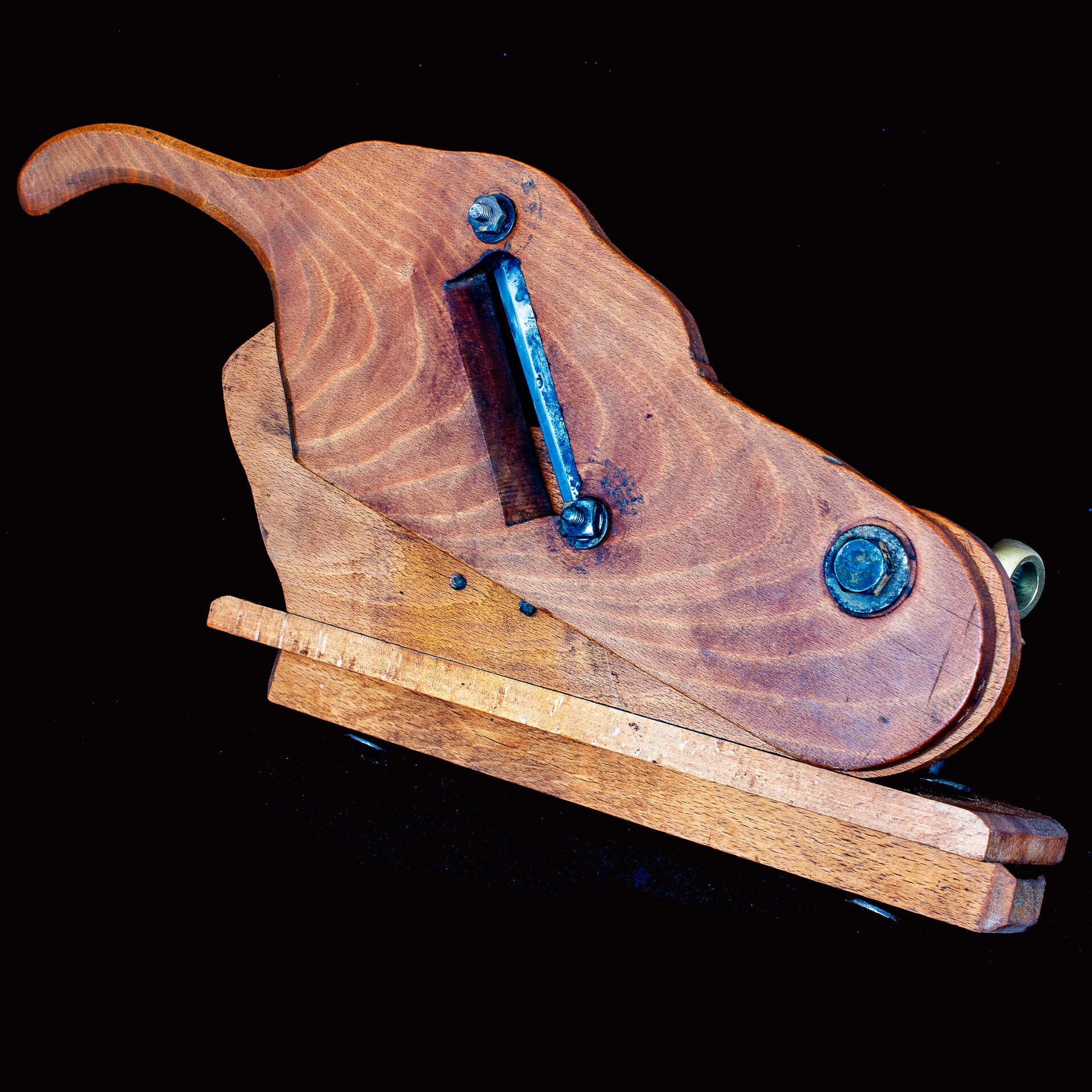 Antique French, hand operated, wooden, salami slicer, original cutting blade.