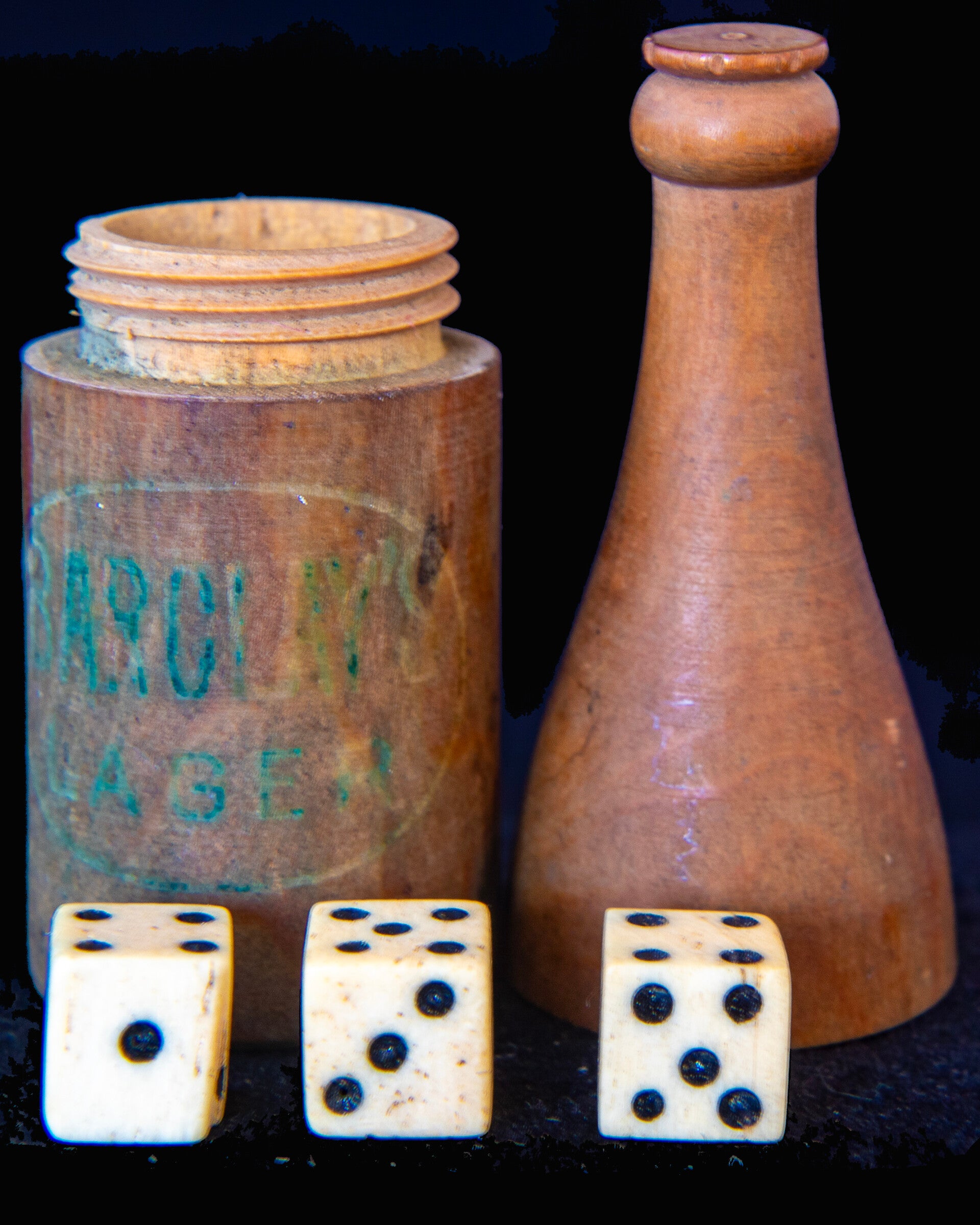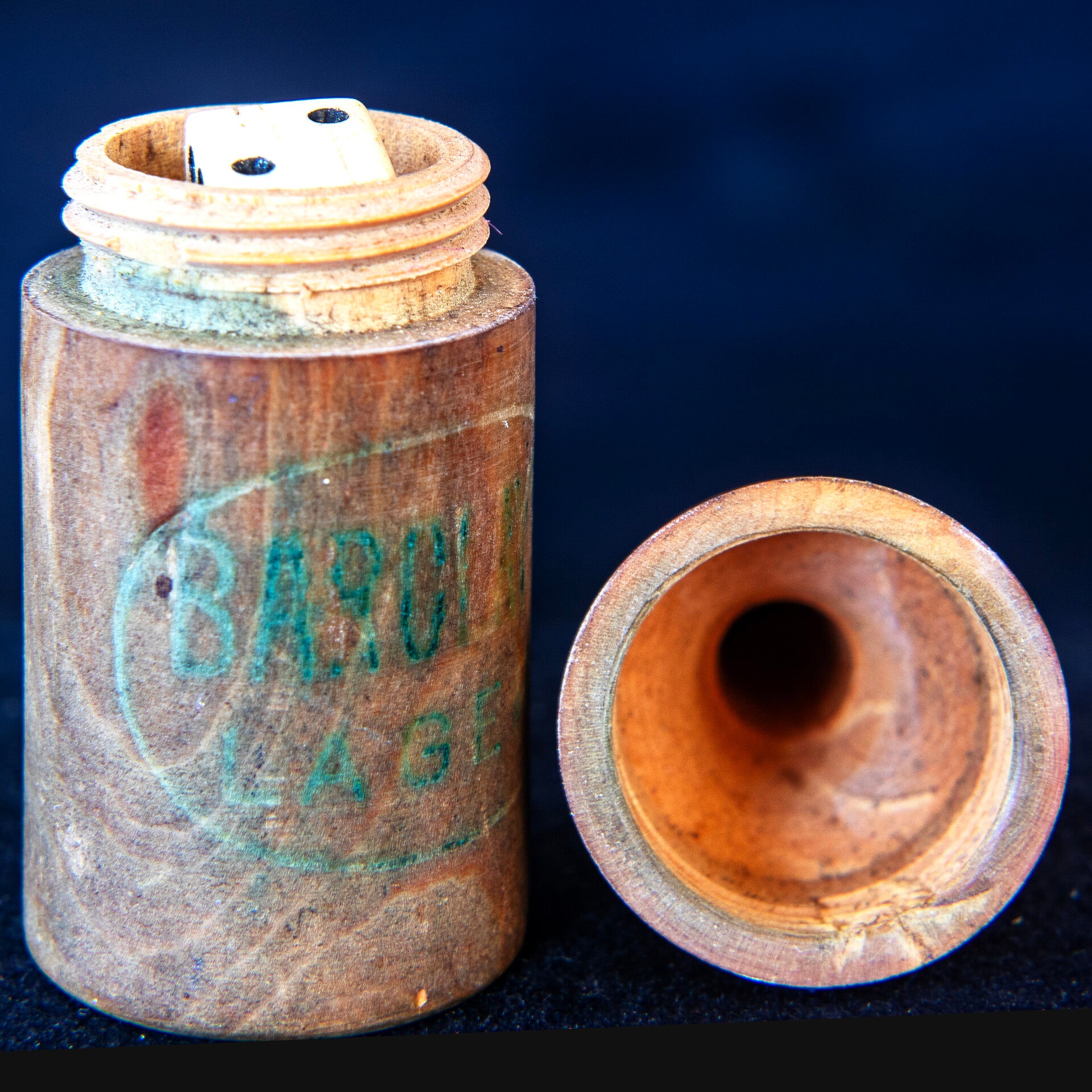 #dicedinabottle #woodenbottle #travellingdicegame #screwtop #threedice #threebonedice #bonedice #barbumslager #antique #antiquedicegame