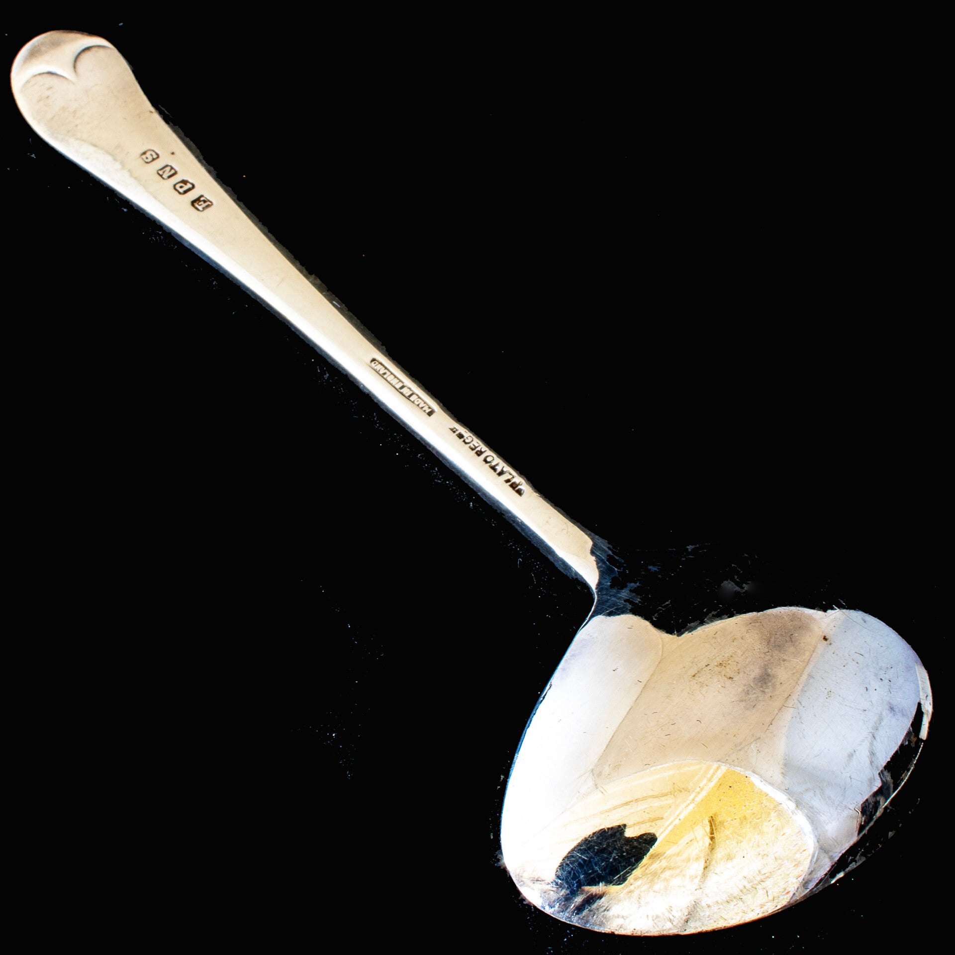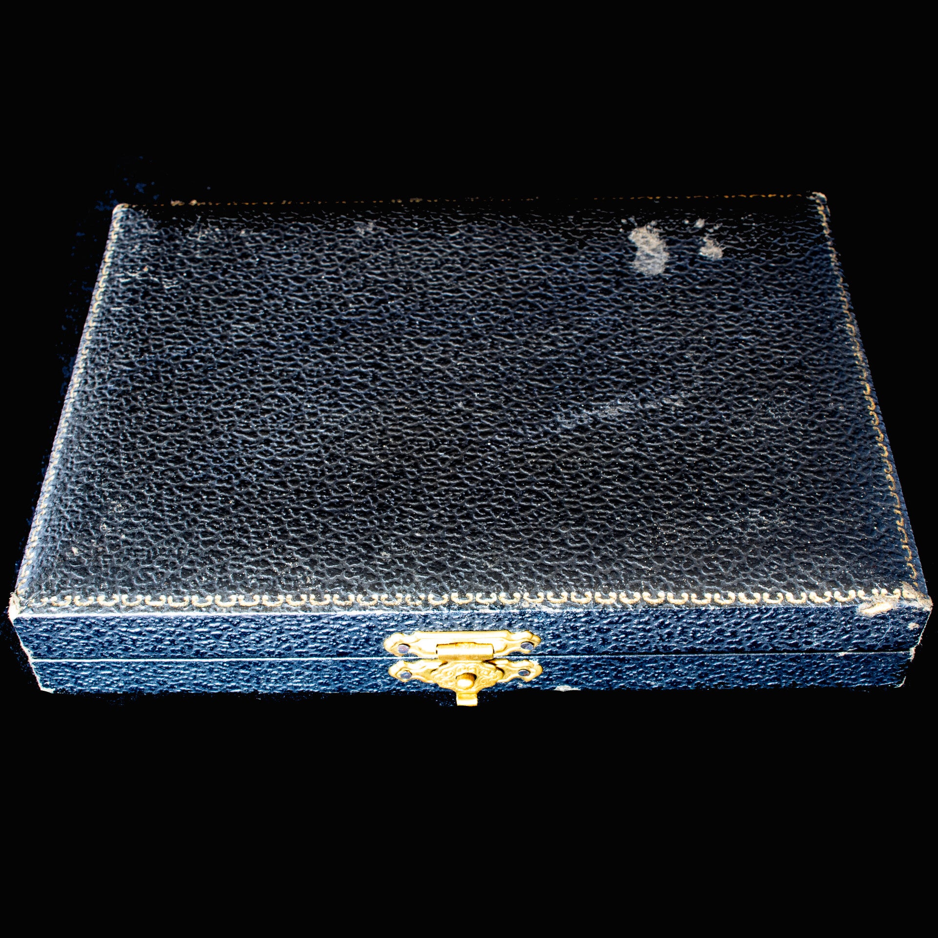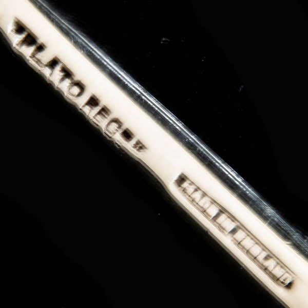 A number of different companies made sets to this design, some in sterling silver This set however is an EPNS set, made available for those with bigger budget constraints I imagine, by the Plato Company in England. As far as I can ascertain this company was basically a flatware hire company, so I presume they may have supplied their cutlery to events and in some cases to organisations where children were cared for/fed, but perhaps retailed some EPNS sets as well. This set is pre-owned but still in very pleasing condition. The presentation box may have taken most of the damage with some abrasions to the surfaces – see images. The box measures 125mm long by 105mm wide and 25mm deep.