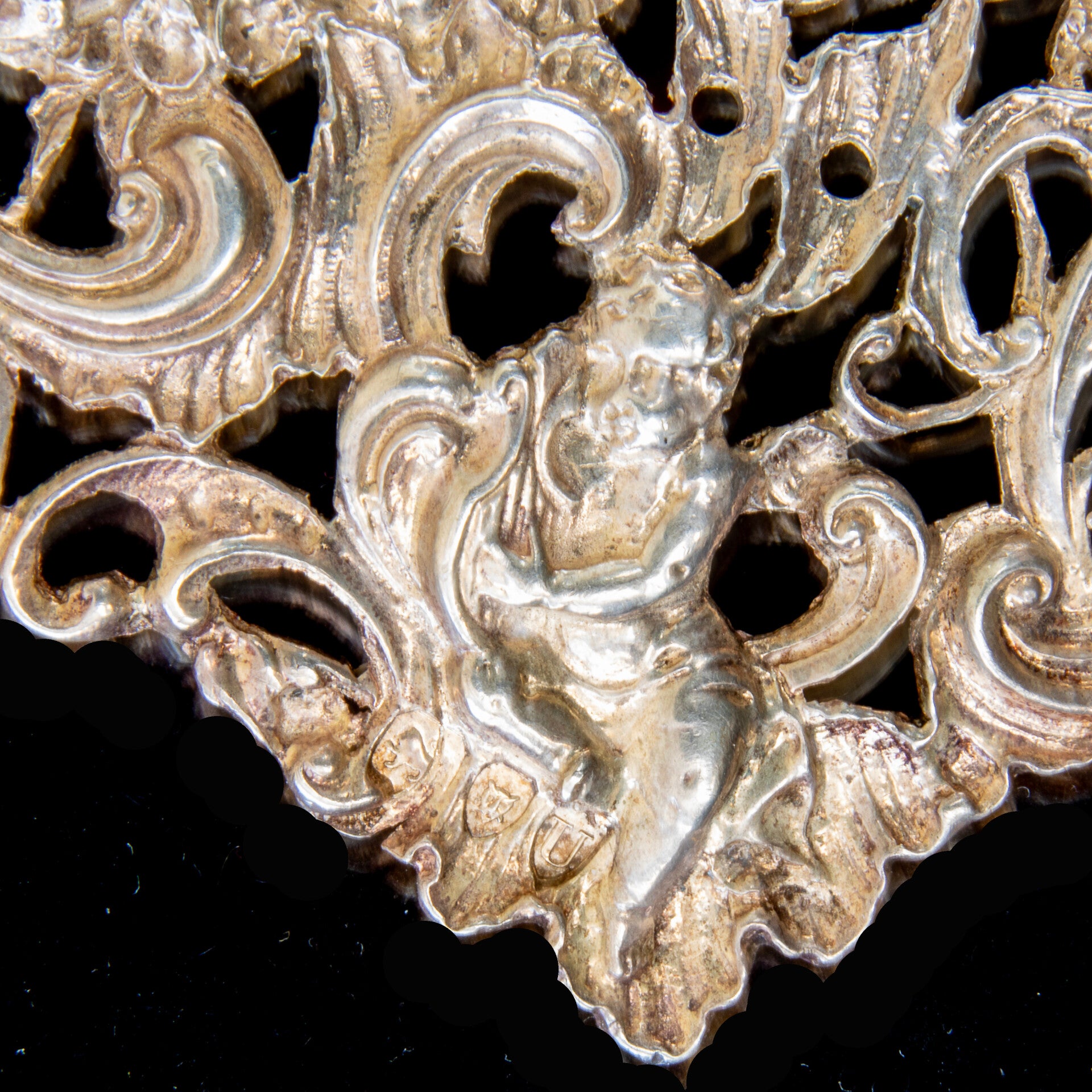 Antique Sterling Silver nurses belt buckle featuring cherubs
