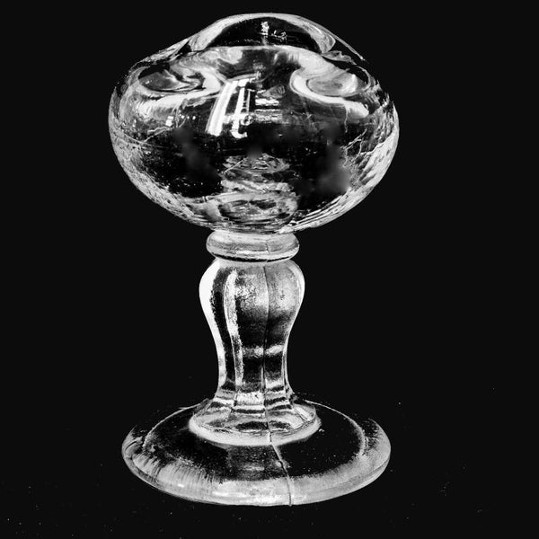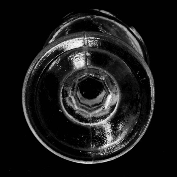 Auld Curiosities is delighted to offer our second antique, pedestal based, eye wash cup in the ‘John Bull’ shape, for your viewing pleasure. Eye washing has been a long standing practice both for administering medications and for washing out impurities. This particular eye wash cup doesn’t have any branding on the base of the pedestal to identify a maker so in a desire for accuracy and honesty I can only say that it is of the form usually referred to as a hand blown (into a mould) John Bull eye wash cup. This pattern was patented in 1917 and the cup stands 2 ½” (63mm) tall on a base with a diameter of 1 9/16” (39mm). The pedestal has been shaped into eight flat faceted surfaces and swells before meeting the bottom of the generously shaped cup. Condition is excellent for a pre-owned piece of this age – no chips or cracks.