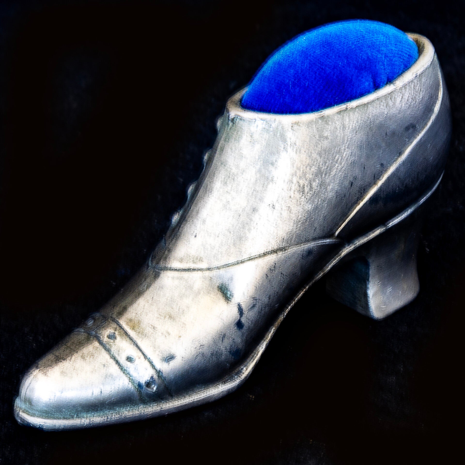 #pincushion #shoepincusion #maryjane #louisheel #velvetpincushion #victorianstyle #edwardianstyle #victorianera #edwardianera #pewter #polishedsilvercoating