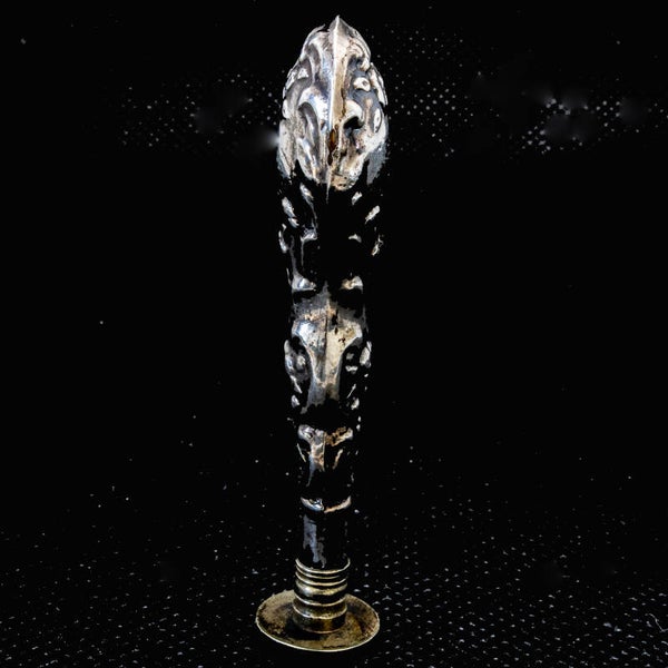 This is a truly wonderful find – a seal in its original fitted case which is clearly branded as being Anaclet Angouleme. My French is below even basic but I believe that Anaclet was the shop name for a watchmakers and jewellers in Angouleme – a French city. A quick internet search turned up a postcard showing the shop frontage which is branded in French as Horolgerie Anaclet Bijouterie. The seal shows the raised palm of a hand and the words Love and truth. From AI – “Love and truth are interconnected values, where love without truth can be misguided or hypocritical, and truth without love can be harsh or brutal”. The sterling silver handpiece is clearly stamped (see images) with the makers mark for the ‘Boots Pure Drug Company’ and 1913 as the year of assay in Chester England. The seal measures 61mm tall, standing upright and weighs 7.51 grams As photographs form an important part of the description, happy to provide additional images if requested. Please also take the time to check out our eclectic range of items being offered. #seal #personalseal #waxseal #sterlingsilver #truthandlove #raisedpalm #anaclet #angoulenefrance #horolgerieanacletbijouterie #chesterassay #1913assay #bootspuredrugcompany #backstamp #makersmark