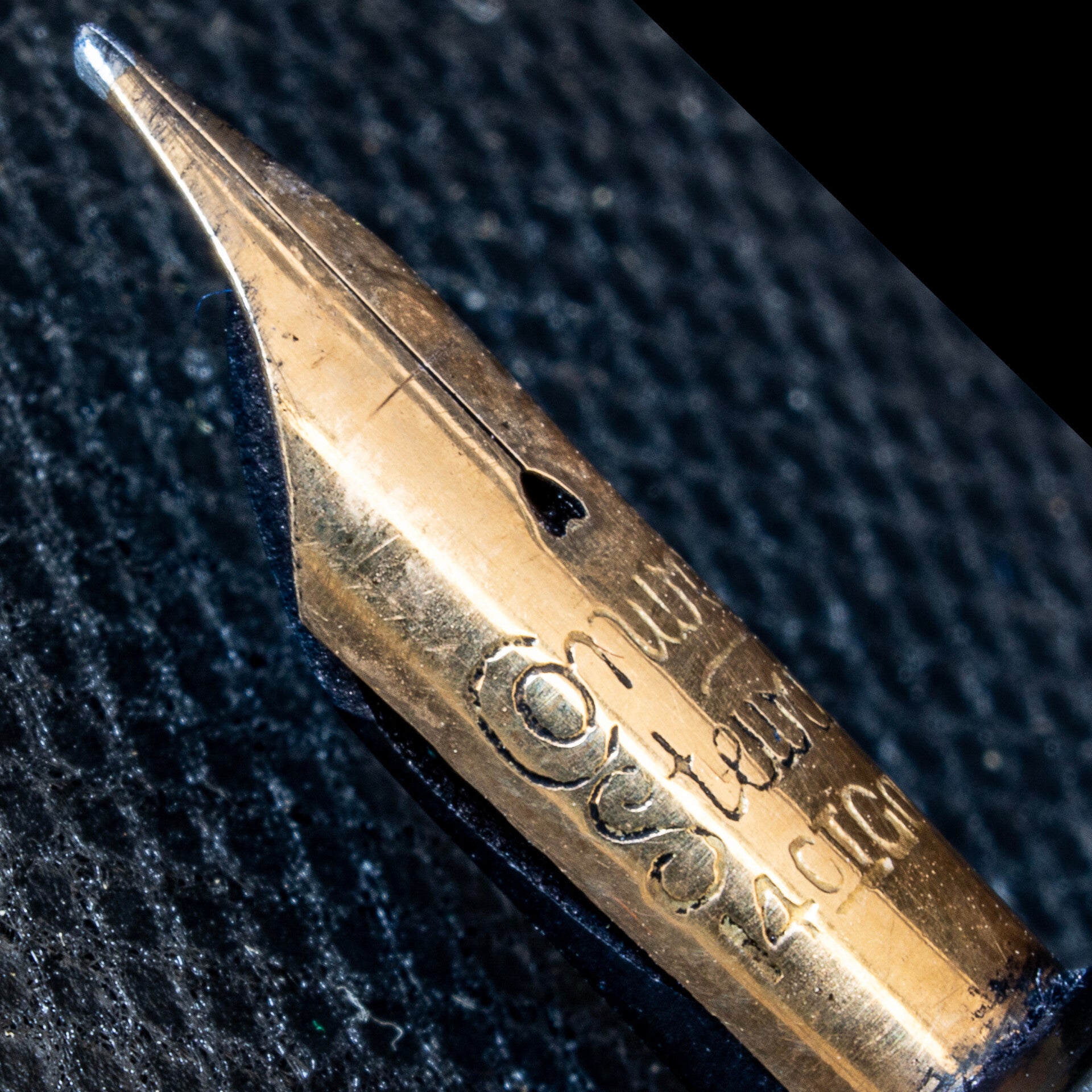 The reading that I have done suggests that the pen has a Vulcanite body, which fits with the dates that it was manufactured (between 1930 and 1945). The body appears to have faded over the years, when I compare the piece covered by the cap to that exposed to the elements over the years. My thought is this was a black fountain pen in its youth but the elements and dare I say some over enthusiastic ‘polishing’ has changed the cap and exposed body to a brown rather than black. That ‘polishing’ has also all but erased the pens logo (The Conway Stewart) and I imagine it will require a dedicated restorer to address this as well as the servicing of the pen in general. Comes with the original box and guarantee