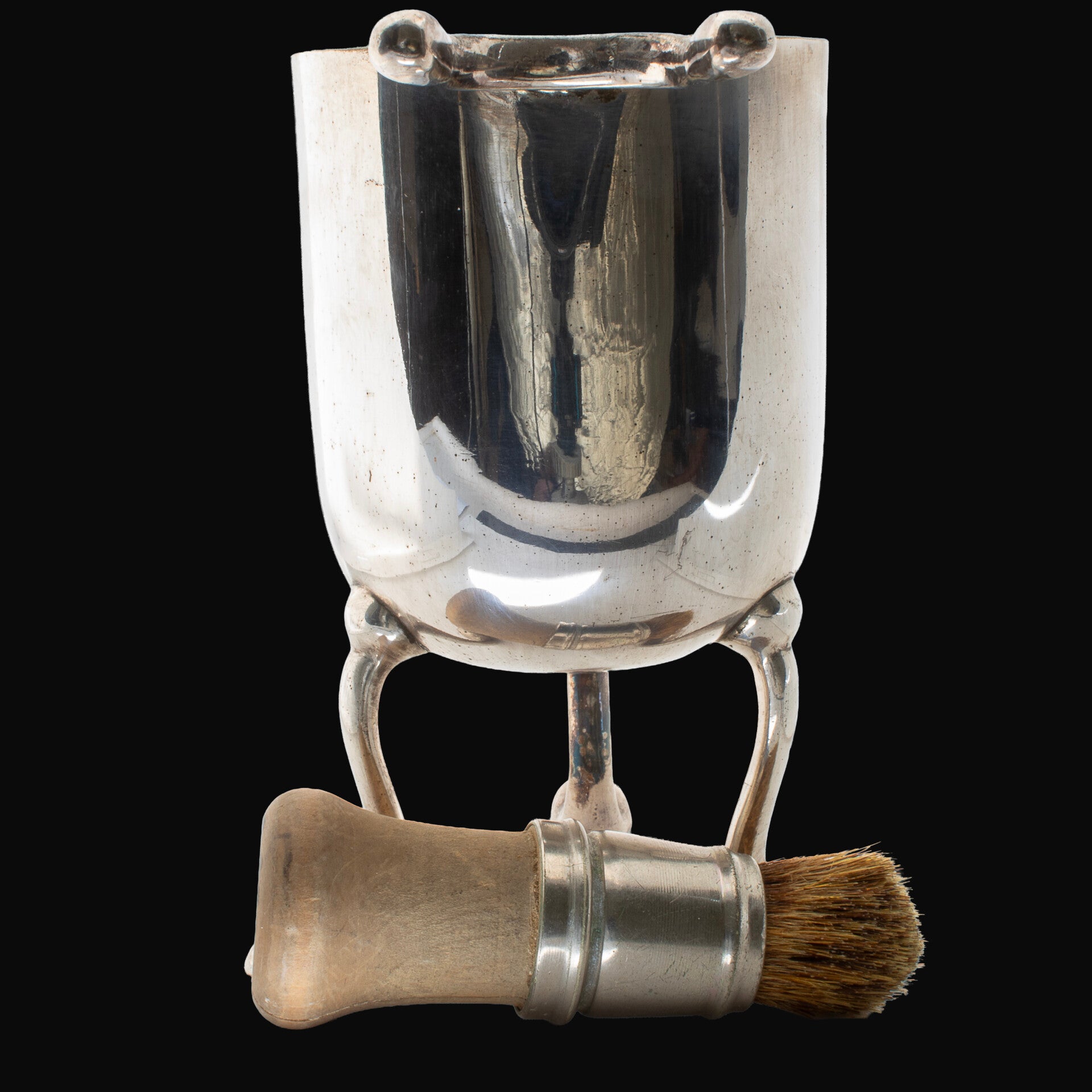 This offering from Auld Curiosities is perhaps of more interest to those who shave, and especially those who like to shave with older type implements. For those of you who can relate, we offer a silver plated shaving mug and brush, on three equidistant spaced legs with an almost cabriole shape, but very substantial feet, There is a generous handle opposing a holder for the brush (in this case very well used and worn down). The body is of course circular and the interior surface shows considerable previous use. The mug stands 4 7/8” (124mm) tall to the top of the rim and has a diameter of approximately 2 7/8” (74mm), again measured at the rim. The brush has a wooden handle and the bristle would appear to be boar bristle or something equally firm. There is an impressed maker’s mark on the side - difficult to read but appears to be X:Y - not listed on the standard maker’s marks websites. As photographs form an important part of the description, happy to provide additional images if requested. Please also take the time to check out our eclectic range of items being offered. #personalgrooming #shavingmug #silverplate #tripedal #cabriiolestyle #shavingbrush #handlewiththumbrest #boarbristle #auldcuriosities #dunedin #newzealand #antiques #collectables #vintage #curios