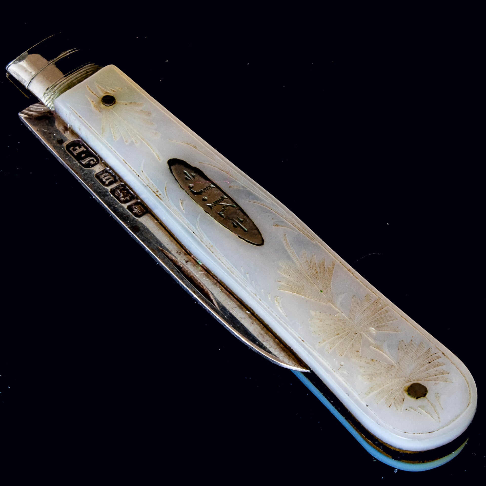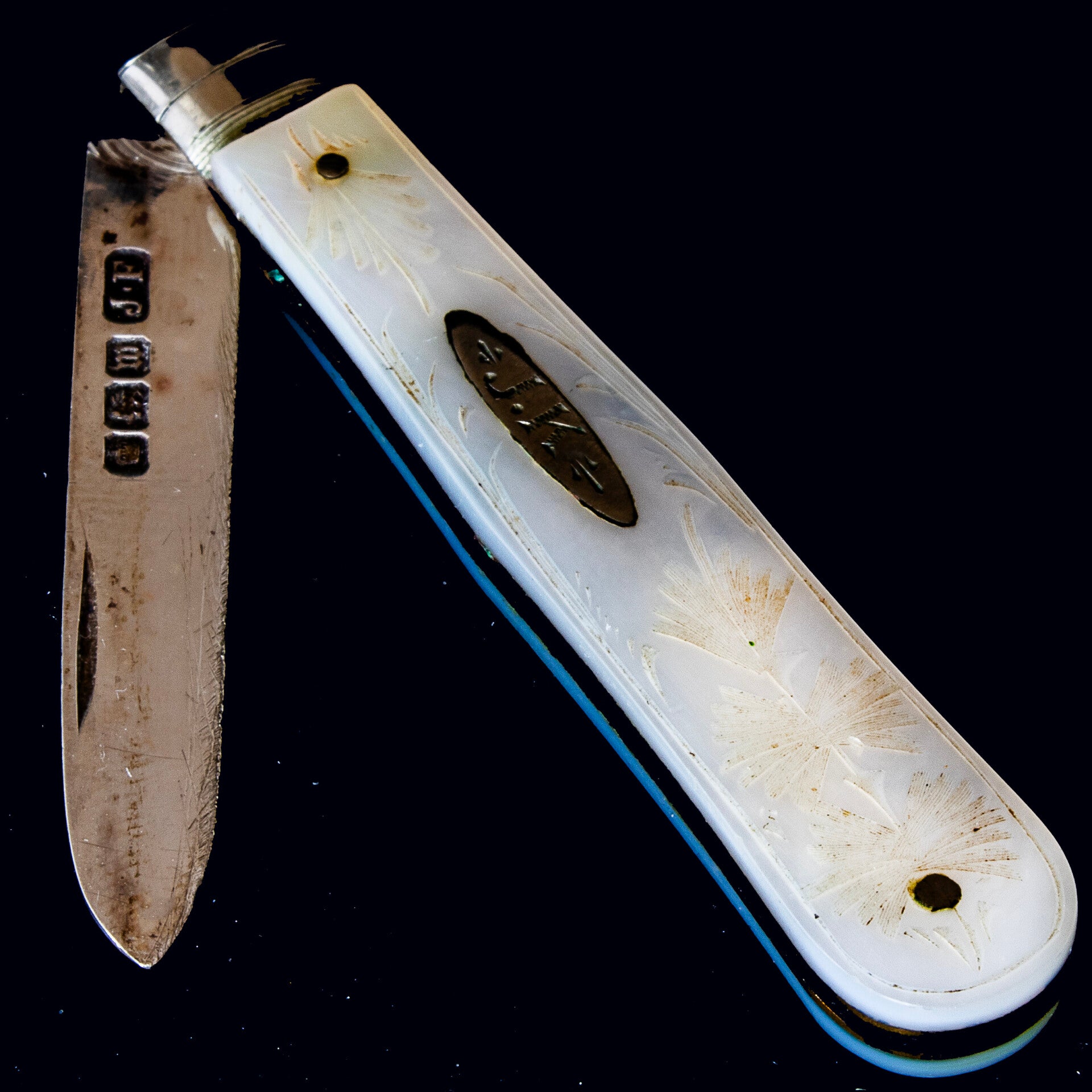 #fruitknife #sterlingsilverblade #nineteenfourteen #jamesfentonandco #birmingham #mopscales #motherofpearlscales