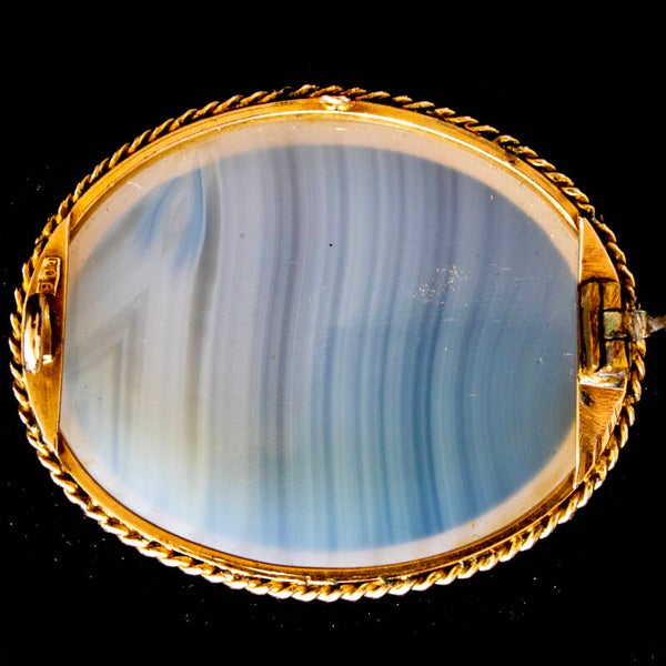 #agatebrooch #whiteagate #striatedagate #goldframe #9ctgold #rareagate #cclasp #auldcuriosities #dunedin #newzealand #antiques #vintage curios #collectables