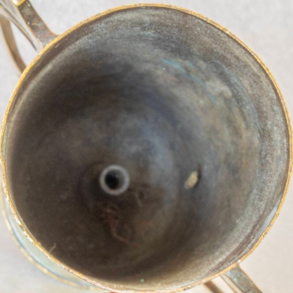 Art Nouveau style, two handled brass vase, created by trench art