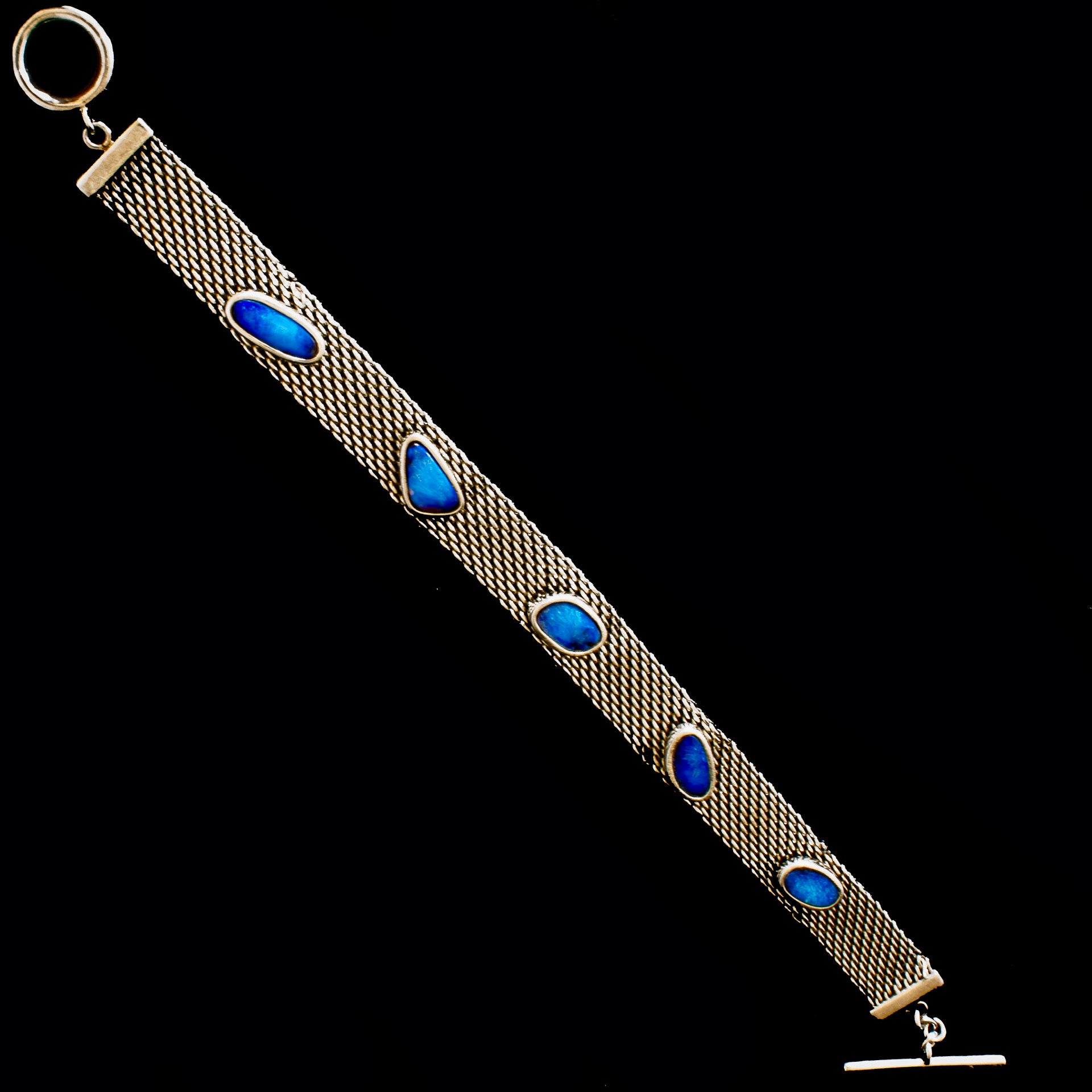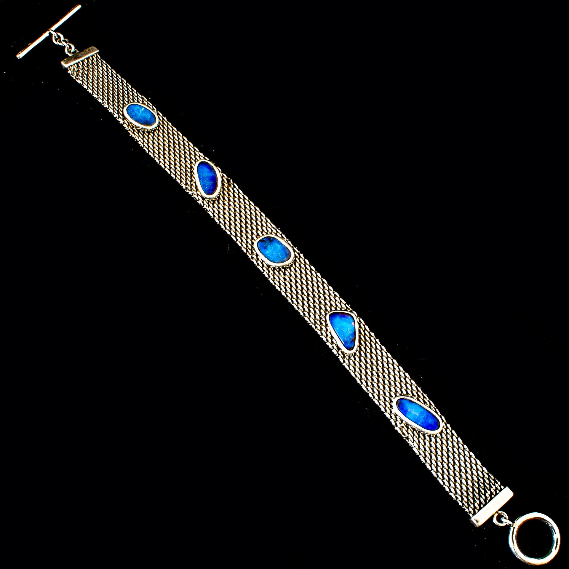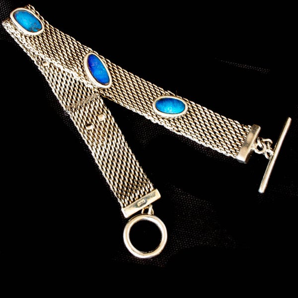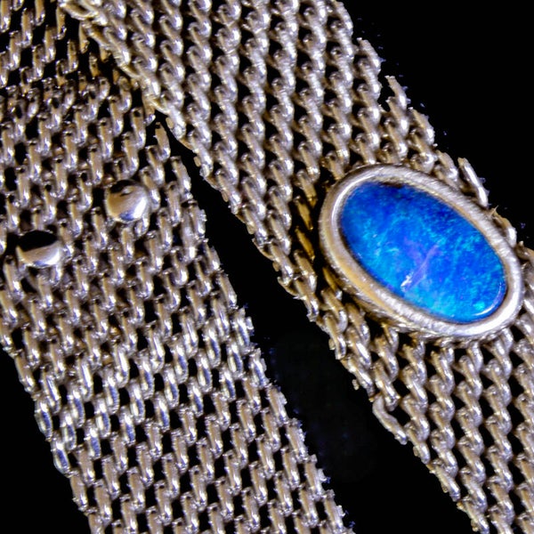 Sterling silver mesh bracelet with 5 mounted irregular shaped opal