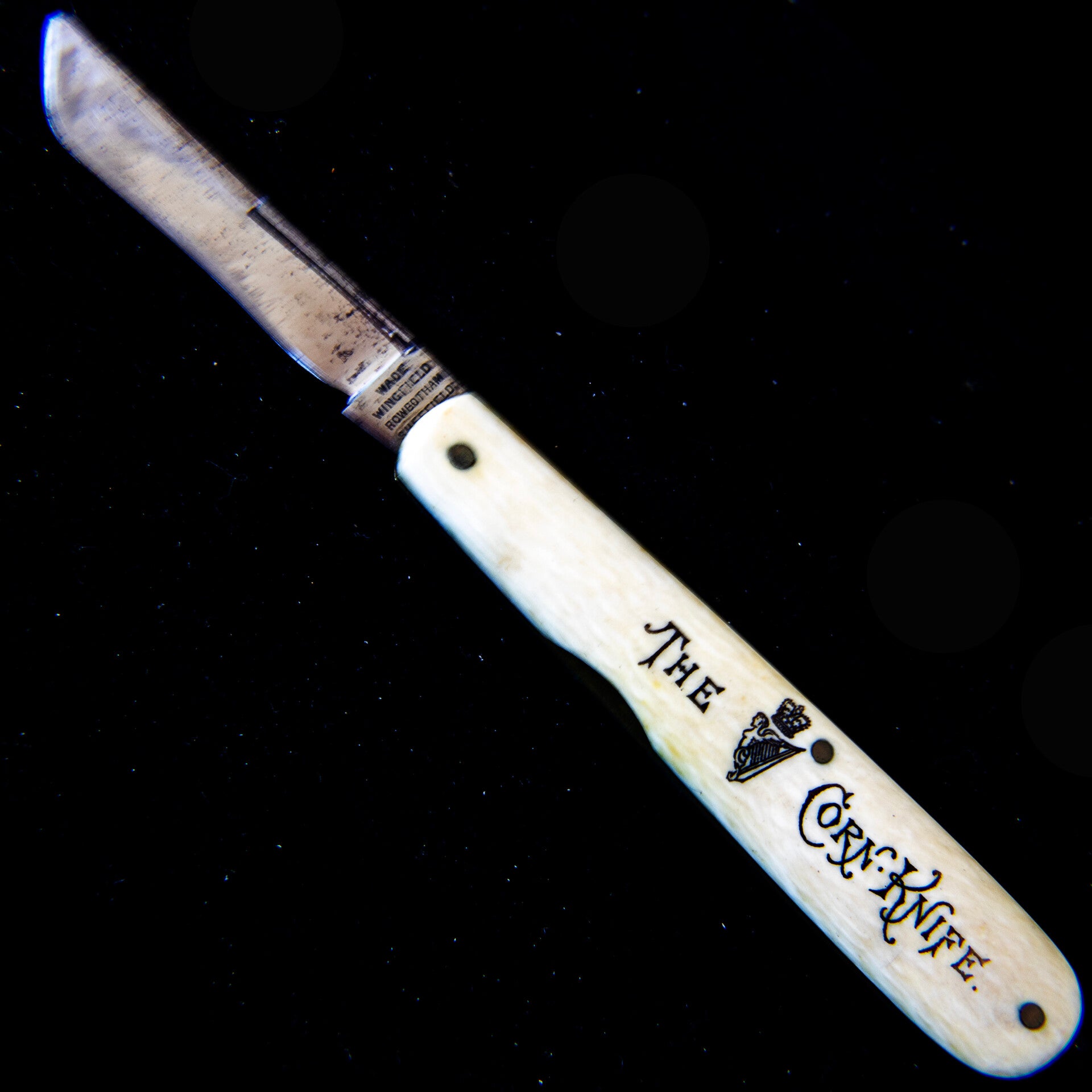 This cased set is a true find. Not only are the straight razors in remarkably good condition but the set includes a branded foot care / corn trimmer folding knife and a celluloid nail care pick and cuticle tool. As partners came and went, this business had a number of name modifications, but best evidence suggest that the Wade Wingfield and Rowbotham name was only in use between 1816 and 1850. While is not possible to fine down the date of the set, it at least must fall within those 34 years. This is also backed up by the relatively small bend in the handle – the earliest straight razors were exactly that – straight, this set somewhat later but not like the modern handles, bent to fit the grip more readily. Both blades are emblazoned with a quote from Shakespeare and the blades have minor discolouration but no rust or damage to the edges. The company name appears below the jimps and fully extended teach razor measures 245mm. The handles are 146mm long and the blade (including the tailpiece which has not previously been included), measure145mm. The scales on both razors are celluloid while the scales on the corn knife appear to be bone as does the nail care tool. There would have been a third tool but this was not present when this set came into our possession 25 years ago. There is wear commensurate with age but careful treatment, and we would be confidant that a buyer with the knowledge and skill to do minor refurbishment would have a treasured set to be proud of.