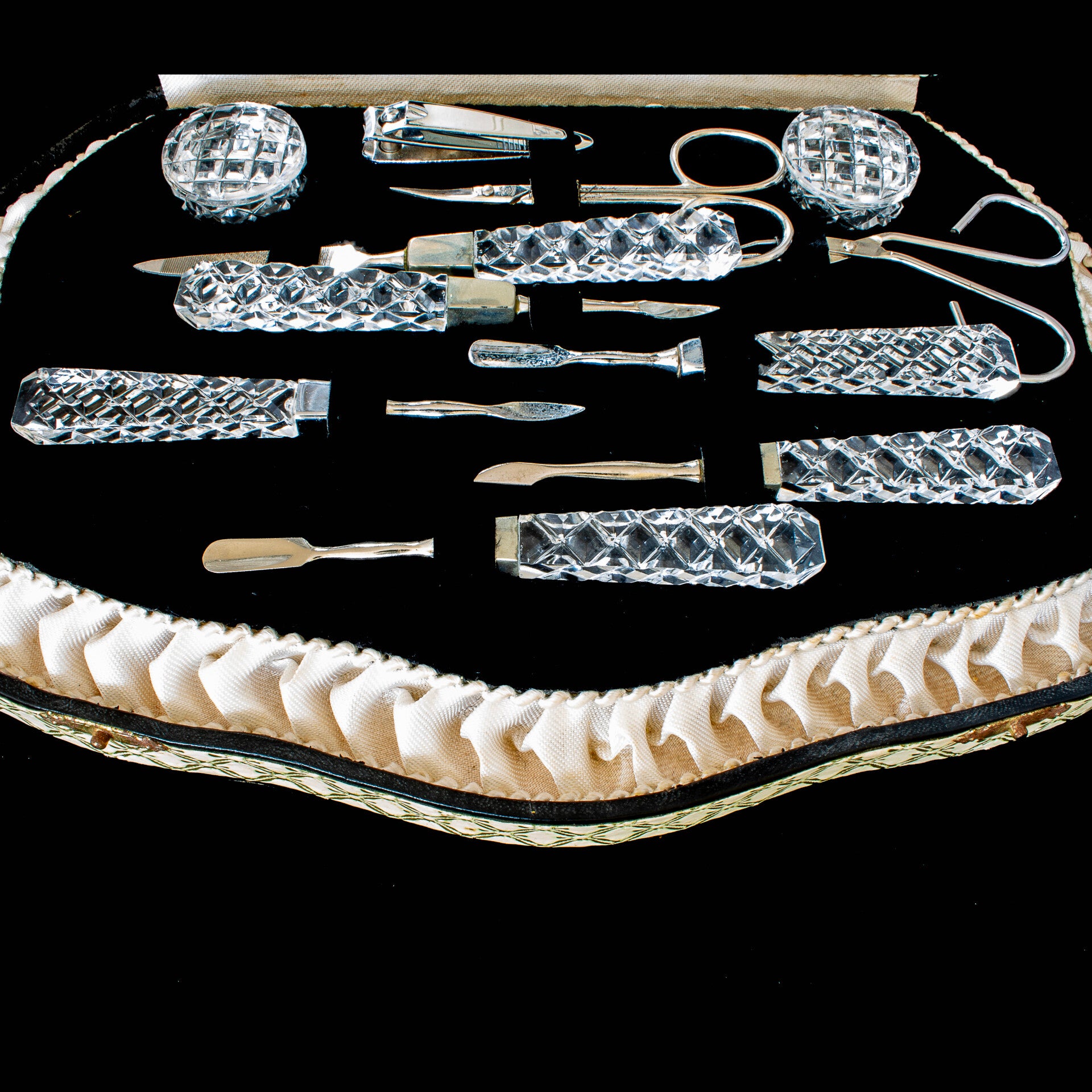 #manicureset #casedmanicureimplements #cutglasshandles #cuticletools #eyelashtools #nailscissors #nailfile #auldcuriosities #dunedin #newzealand #antiques #vintage #curios #collectables